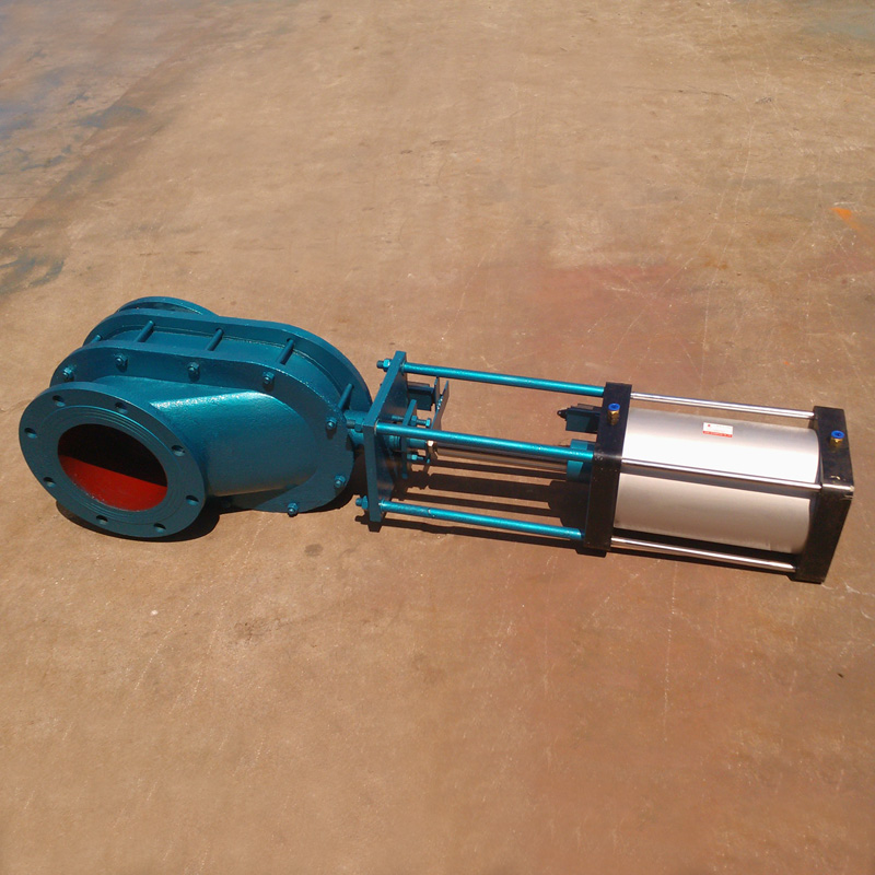 当气源从上进气口通入时,阀杆带动阀板向下运动,阀门关闭。当气源从下进气口通入时,阀杆带动阀板向上运动,阀门开启。阀板与阀座之间加载弹簧,弹簧弹力始终使阀板压向阀座保证阀门的密封性,又容许阀板在垂直上下方向移动,这有助于补偿阀门零件的热胀冷缩,并能克服任何背压变化对密封的影响与防止颗粒介质进入两密封面之间。在启闭过程中,阀板能产生自转,使得密封面之间产生研磨、抛光作用,而且由于阀体对通道偏心,在开启排卸物料时,会产生涡流,形成的物料旋涡会自行清扫阀门内腔。所有的这些特点,使得这种阀门具有超长的使用寿命,为您的系统安全运行提供了可靠的保证。
