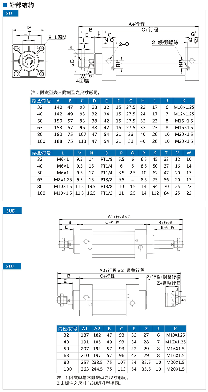 SU系列 标准气缸(无拉杆式)