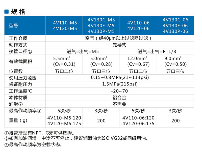 电磁阀(五口二位.五口三位) 4V100系列