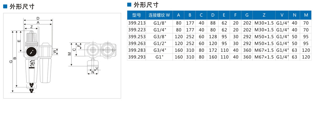399系列二联(过滤器减压器+油雾器)